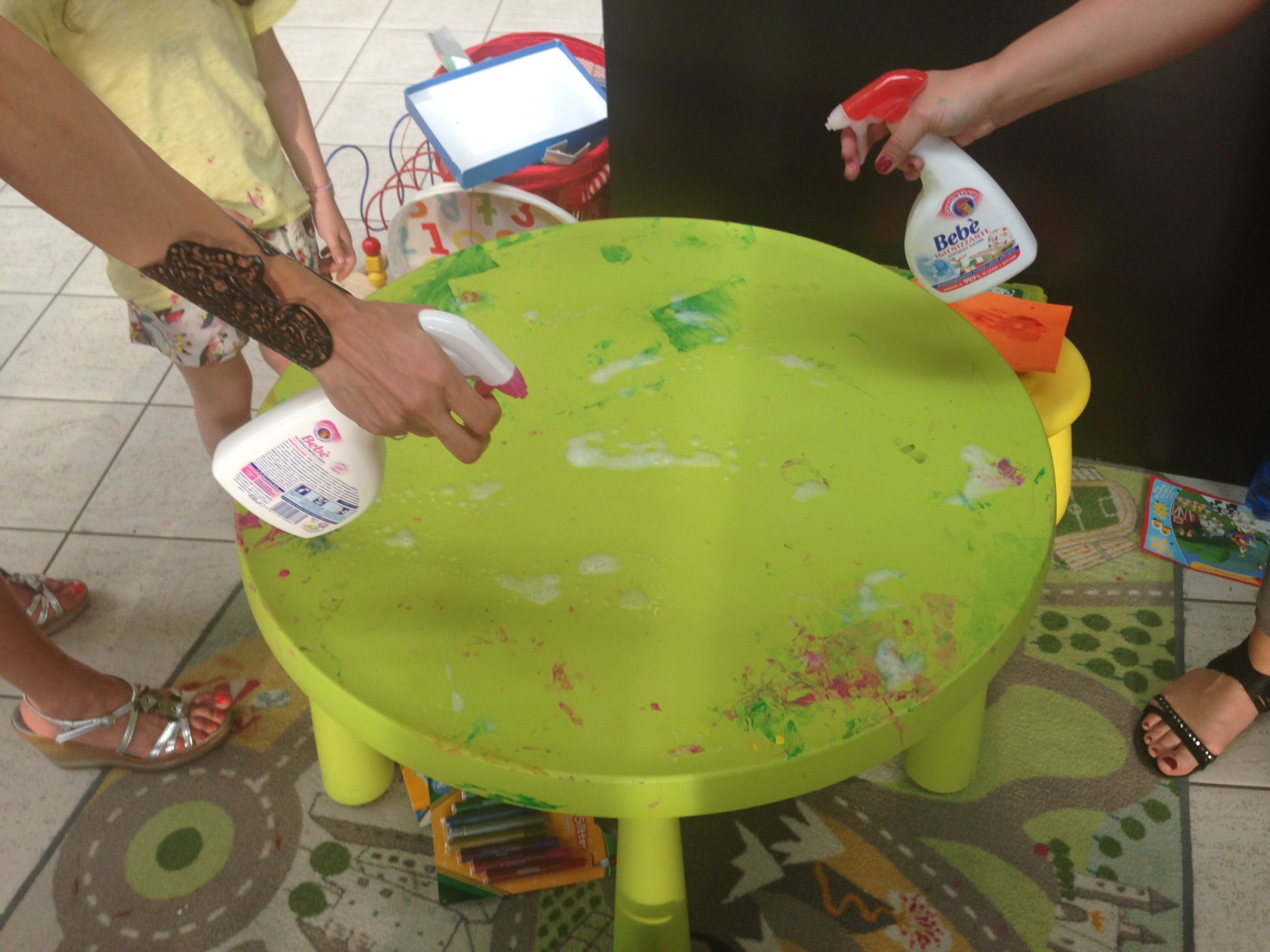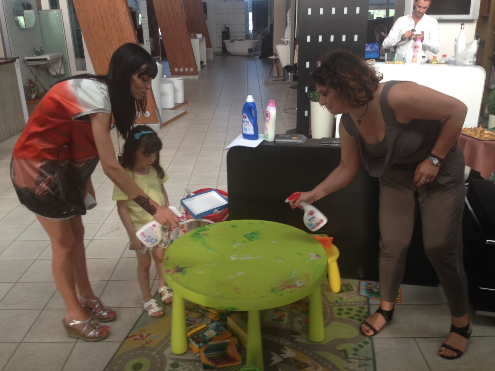 #liberidisporcarsi dovrebbe essere un appuntamento obbligatorio in ogni scuola e in ogni casa, perchè non avete idea della creatività che un bambino sprigiona quando si sente appunto libero da divieti e costrizioni (e dalle ansie di mamma). Bisogna pulire? Sì, ok, ma si può fare tutto nel giusto modo. Io e le mie amiche, ad esempio, abbiamo organizzato uno spazio con tavolo e tappeto a delimitare l’area di gioco, abbiamo vestito i nostri bimbi con abiti in cotone semplice e non con qualcosa che potesse rovinarsi e soprattutto ci siamo assicurati che tutti i giochi ed i colori usati fossero atossici, perchè c’erano anche bambini molto piccoli che non hanno mancato di “assaggiare” gessetti e tempere. Poi ci siamo godute la loro gioia, la loro creatività che esplodeva su un foglio bianco, il loro scambiarsi le cose con serenità visto il clima di allegria. E una volta messi ad asciugare i disegni, siamo passate alla fase di pulizia, semplice e perfetta con lo spray igienizzante per superfici dal profumo delizioso.