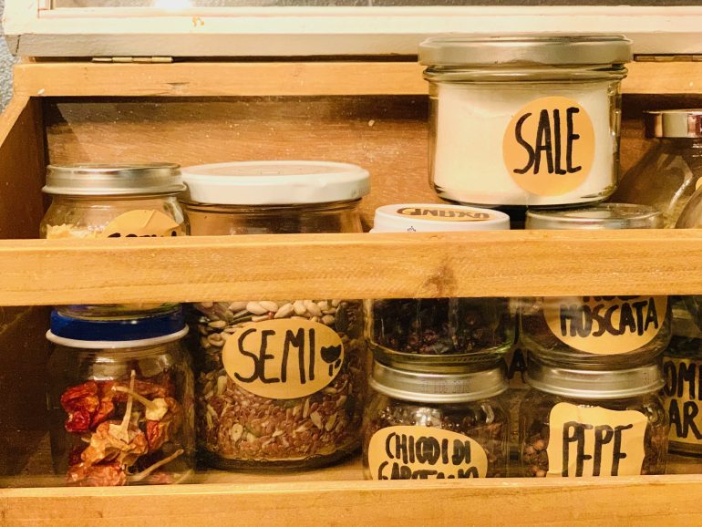 - Scegliete l’etichetta della forma adeguata al barattolo e scrivete a matita il nome della spezia.