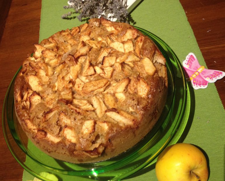 In questa versione della torta di mele abbiamo utilizzato solo farina integrale per l’impasto per dare alla nostra torta un sapore più rustico e antico. Inoltre questa torta di mele è senza burro e senza latte e con solo zucchero di canna, adatta quindi agli intolleranti al lattosio e a chi ha un occhio di riguardo per le calorie ma non vuole rinunciare ad una buona fetta di torta.