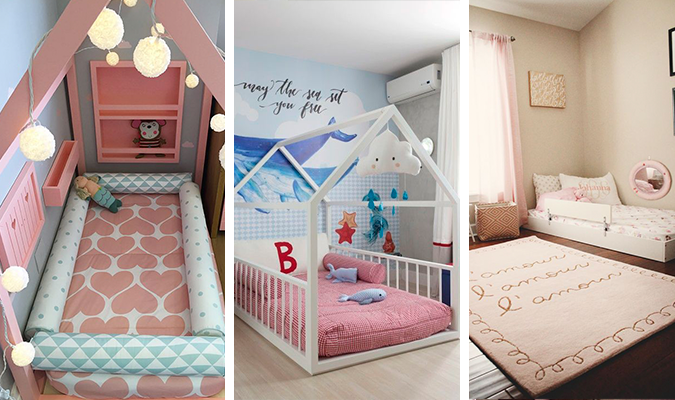 In commercio si trovano tantissimi lettini montessoriani – di solito abbelliti con elementi di legno in stile casetta – ma spesso sono molto costosi. Per fortuna in questo caso ricorerre al fai da te è semplicissimo!