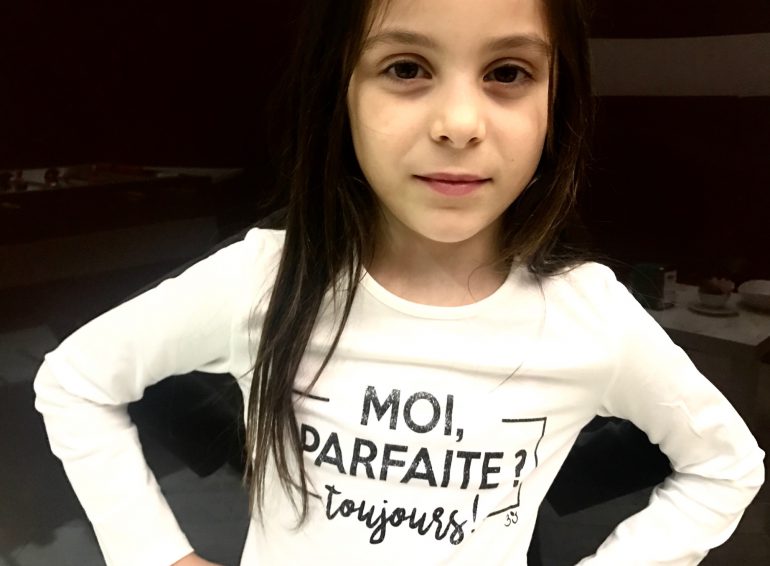 Giulia è nella fase intermedia: ok, la gonna la metto, ma non troppo frou frou e con una tshirt molto semplice. Questa di 3 Pommes in ecopelle è un ottimo compromesso e la maglietta sembra pensata per lei! D’altra parte lo stile francese, come quello di 3 Pommes e Catimini, è fantastico!