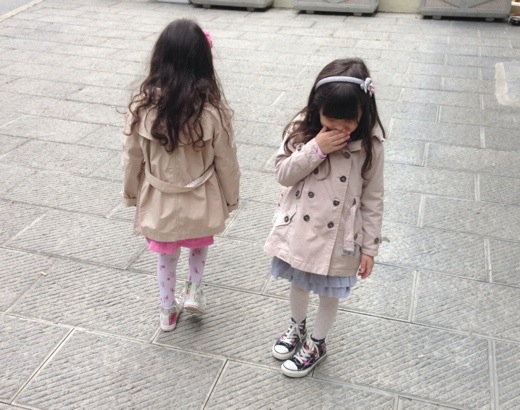 Ripiegando sulle Converse però si ottiene un look altrettanto chic, specialmente se accompagnato da gonnelline svolazzanti e collant fantasia! I trench fanno il resto, per un’aria da signorine irriverenti che fa molto sporty-chic. Quelli di Elena Sofia e Giulia sono rispettivamente H&M e Okaidi, marchi che adoro per come coniugano il low cost con la cura dei dettagli.