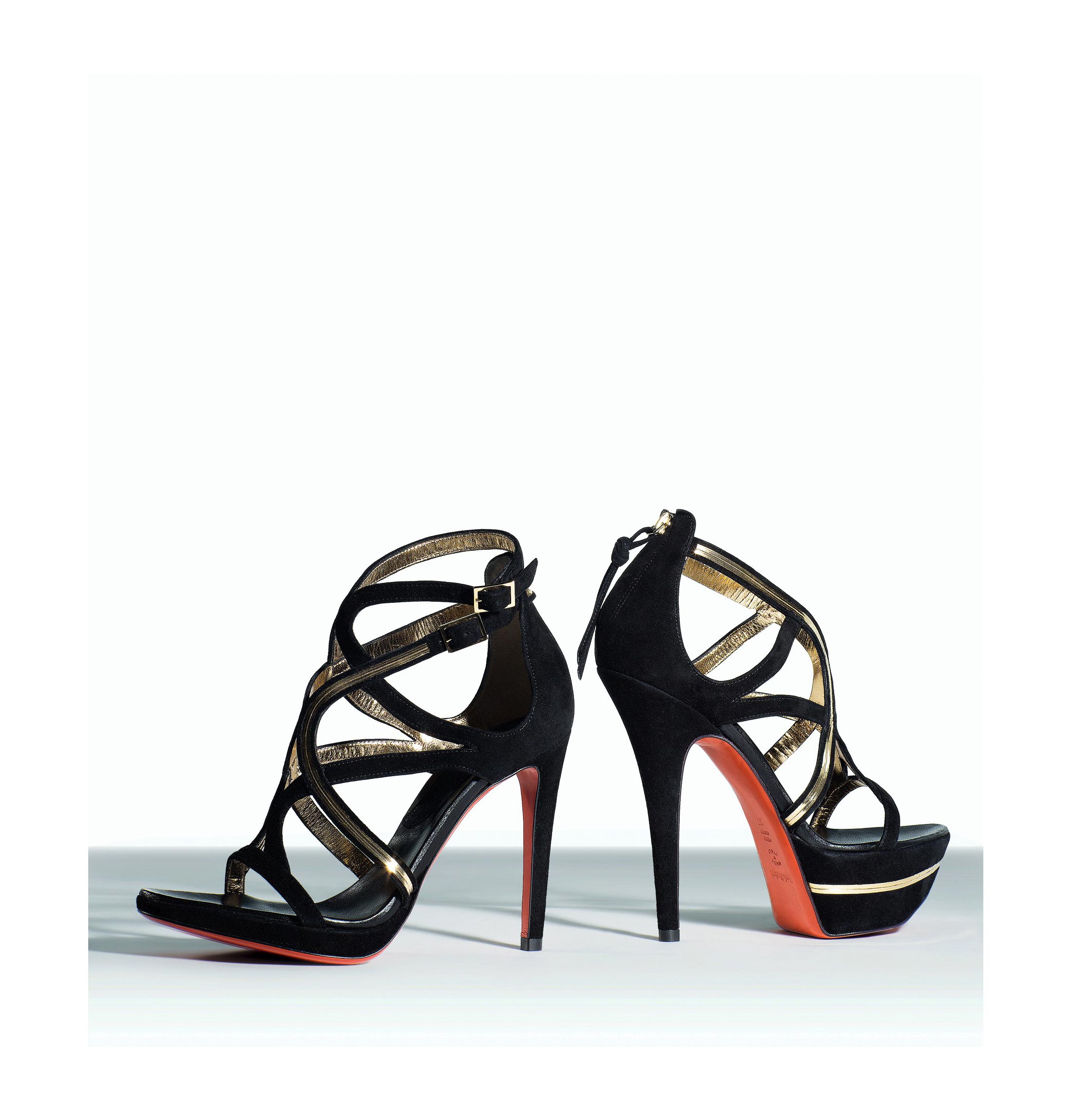 Date un’occhiata a queste due meraviglie di sandali con tacco altissimo, realizzati in pelle scamosciata con o senza il sostegno del plateau e nastri intrecciati sul collo del piede.