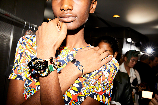 Missoni invece ha puntato su una grande tendenza della PE 2018, ovvero il mono-orecchino, che torna protagonista dei look più ricercati, proponendo anche bracciali geometrici formati da tasselli colorati, riprendendo l’ispirazione nativa del brand stesso.