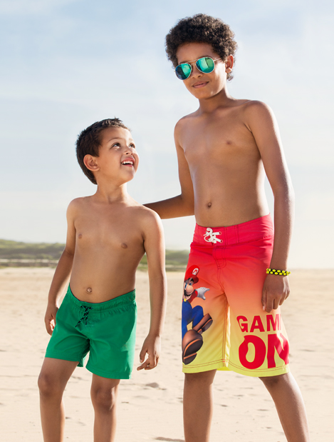 Per i maschietti abbiamo degli shorts da mare, proposti anche in tonalità fluo che andranno particolarmente di moda in questa stagione estiva, mentre per le femminucce abbiamo deliziosi costumi interi con stampe e motivi animalier, ma anche bikini, a due pezzi dal gusto decisamente frou frou.