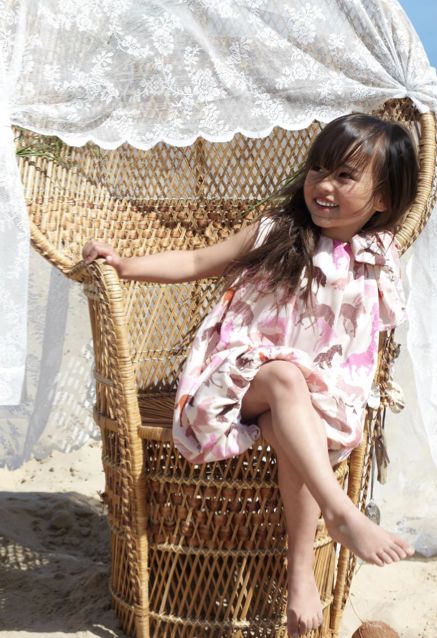 Guardando la nuova collezione Primavera / Estate 2014 colpisce un mix di pezzi colorati e brillanti, fatti di tessuti fluttuanti e stampe vivaci. Un’attenzione particolare va alla baby modella che indossa l’ abito dalla stampa floreale di colore giallo e al suo enorme cappello bianco traforato; che accompagnata dal suo dolcissimo pony emanano un’abbagliante lucentezza e sprigionano l’essenza giocosa che caratterizza tutta la collezione.