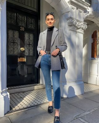 - Balanciare il Volume: Indossa capi superiori più ampi o voluminosi, come bluse oversized o maglioni morbidi, per creare un equilibrio con la silhouette aderente dei jeans.