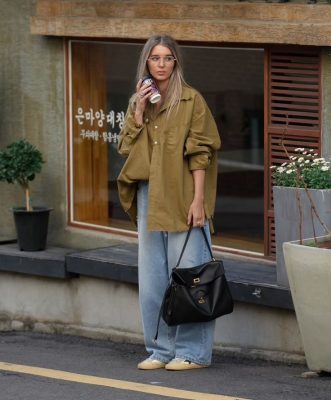 - Scelta del Top: Abbina i jeans wide leg con top aderenti come body o camicie inserite nei pantaloni per definire la silhouette. Gli tops in tessuti leggeri funzionano bene per un look estivo.