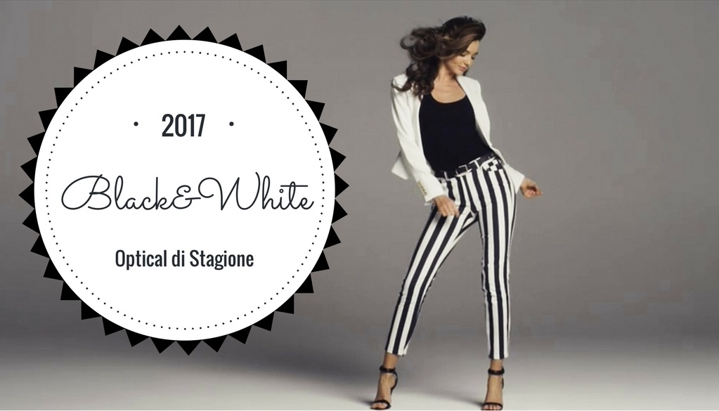 Pantaloni neri accostati a candide bluse dall’aria romantica, abiti che giocano con inserti in bianco e nero, outfit total black che si accendono grazie ad accessori candidi: insomma nella bella stagione 2017 potete indossare l’optical come volete, l’importante è che sia protagonista assoluto.
