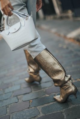 Tacchi dorati, finiture metal, riflessi luminosi: le gold heels sono tornate, ma con un twist più moderno e meno “cerimonia anni ’90”.
