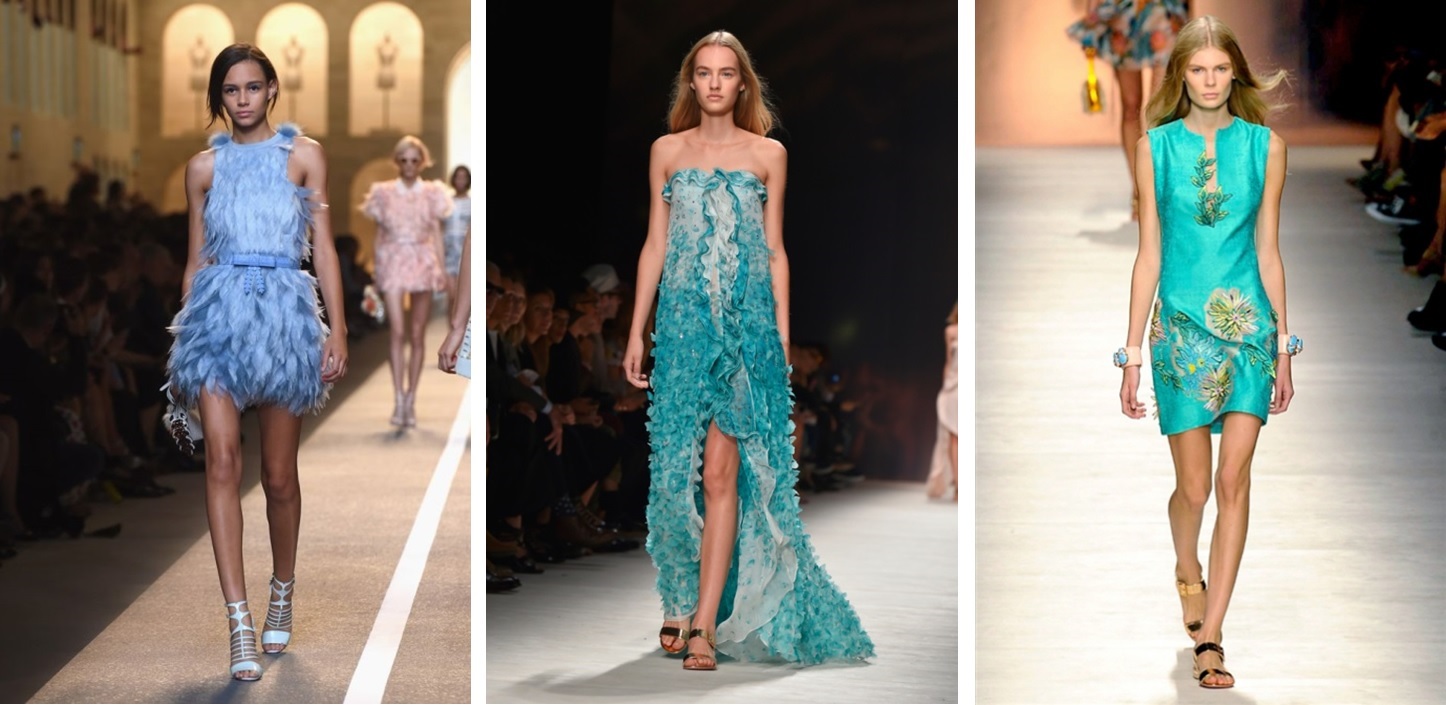 Capitolo azzurro e derivati: qui si può tranquillamente osare il total look, oppure abbinarlo a colori della stessa gamma, creando così accostamenti originali che hanno tutte le sfumature del mare. Perfetti gli abbinamenti blu scuro e celeste, verde acqua e celeste, ma anche azzurro e bianco.