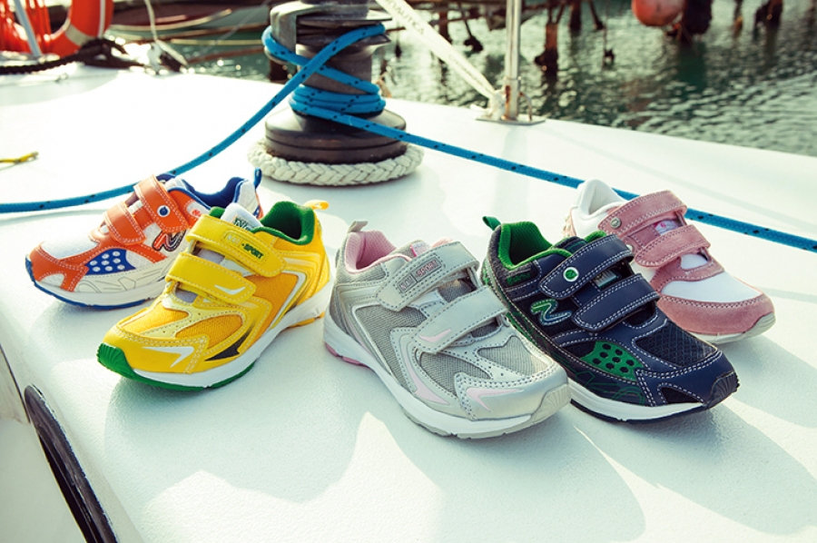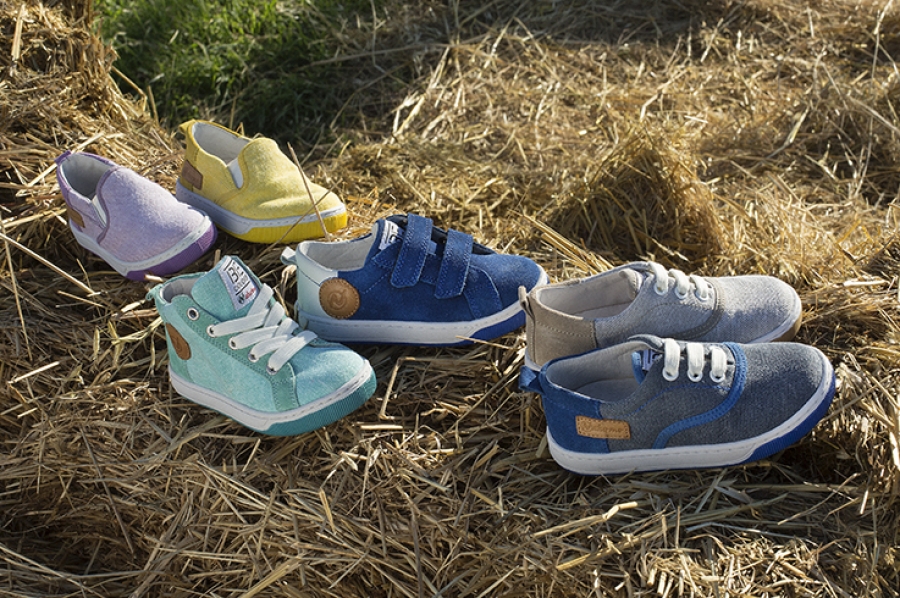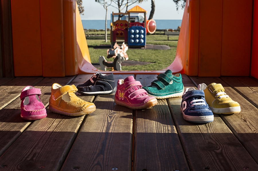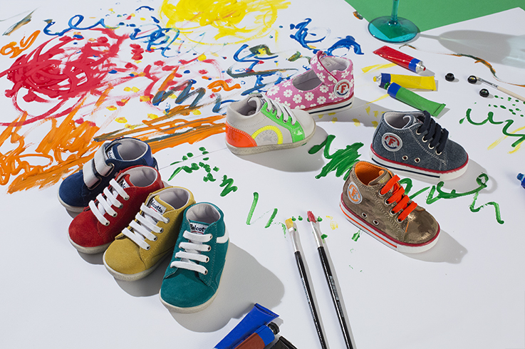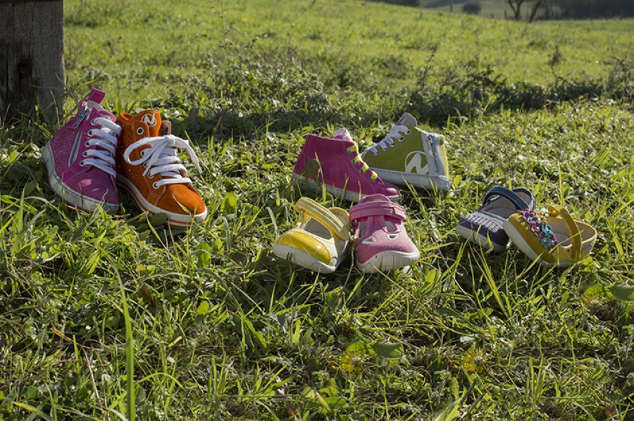 Sneakers, scarpe semiaperte,ballerine e bebè dai toni accesi o pastello con sprazzi di tinte fluo, realizzate in materiali che variano dalla tela al velour, dai tessuti tecnici ai laminati.