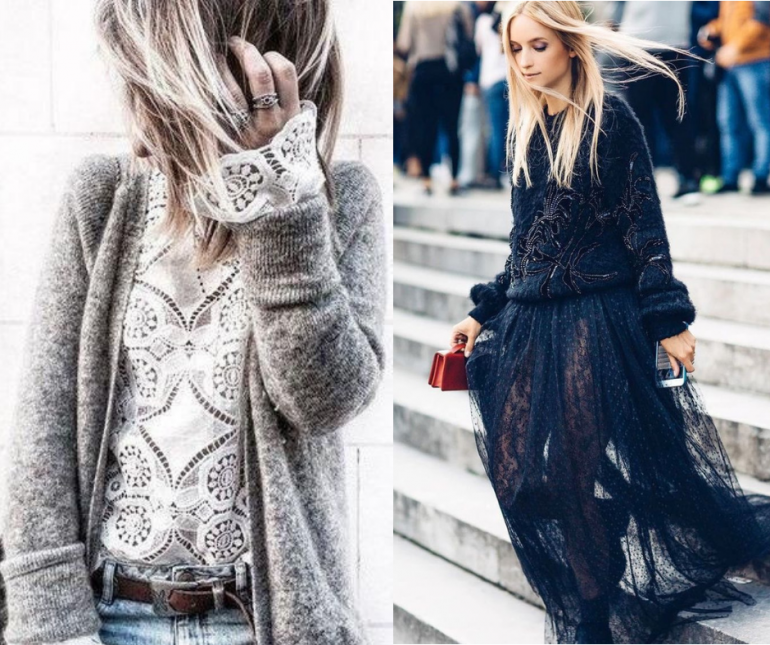 Le sottovesti con orlo in pizzo, le camicette in pizzo, l’abito estivo in pizzo e tutto ciò che vi viene in mente che contenga questo tessuto può essere un ottimo alleato per creare outfit invernali con un bel tocco di femminilità.