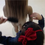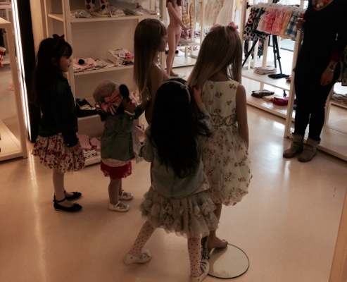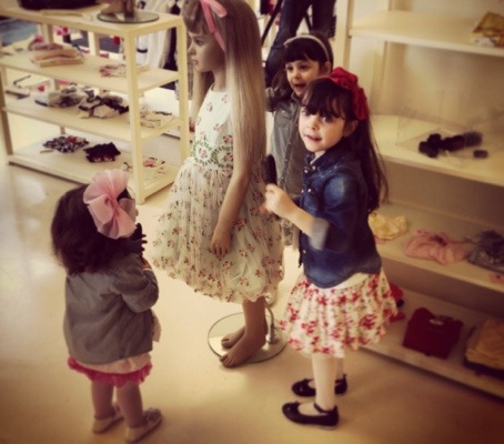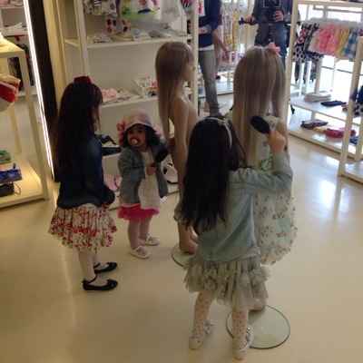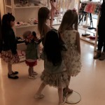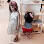 Le bambine erano entusiaste al pensiero di poter giocare con la moda e quando hanno visto gli abitini Monnalisa lo sono state ancora di più! Un tripudio di tulle, pizzo, taffetà ed accessori da favola tra cui scegliere, oltre a parrucche, elastici, spazzole con cui acconciare i manichini. Alla fine Elena Sofia con la classe che la contraddistingue ha creato un outfit giocato sul bianco e nero con tanto di collo gioiello, mentre Giulia, che lo voleva “teddy” (ovvero trendy) ha optato per un abito celeste con fantasia floreale e grande fiocco tra i capelli. Creati gli outfit sul manichino e fotografati, chissà se uno tra questi verrà scelto come protagonista reale delle vetrine Monnalisa!
