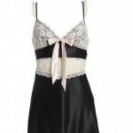 –Cute Cat, perfetto mix tra provocazione e romanticismo. Intimo nero con inserti in pizzo e roselline bianche, (nelle versioni reggiseno push up, slip classico, perizoma, brasiliana) e baby doll con vestaglie abbinate.
