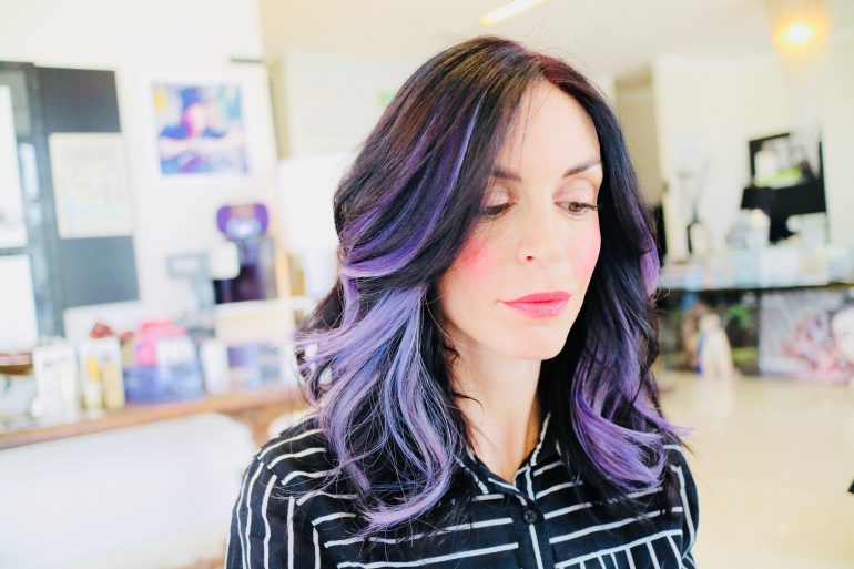 Color Fresh Create di Wella si compone di una palette di 12 speciali tonalità intense e 1 tonalità neutra, per creare un colore davvero personalizzato; nel mio caso siamo partiti dall’Ultra Violet – vero must di stagione – in parte privato delle sue componenti più calde e arricchito di tocchi quasi argentati.