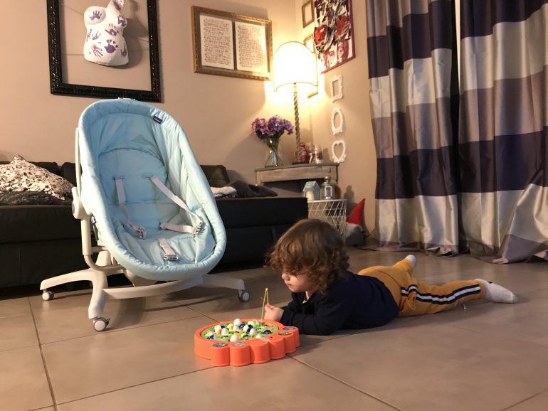 Con Greg mi sono trovata davvero benissimo: io lo sto usando con le configurazioni adatte ai bambini più grandicelli, il seggiolone e la prima sedia. Grazie a Chicco Baby Hug 4 in 1 posso farlo mangiare accanto a noi sul comodo seggiolone e accomodarlo poi nella soluzione prima sedia quando vuole giocare, senza doverlo spostare e potendo anche scegliere l’altezza giusta (se a vista mia o se quella dei fratelli quando vuole giocare con loro) grazie ad un pratico pedale situato nella parte bassa della struttura.