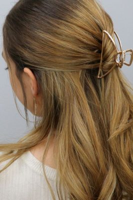 Sempre a Cannes Angèle sul red carpet ha sfoggiato un semi raccolto fermato da un mollettone: quest’ultimo le regala un look davvero molto chic e sbarazzino al tempo stesso. Invece la sua chioma è di colore biondo, perfetta per illuminare il volto della cantante belga. Ormai il mollettone capelli è il vero protagonista dei prossimi mesi e quindi non può mai mancare sulle capigliature.