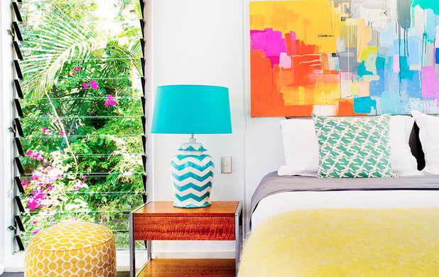 In soggiorno invece si può osare un giallo mango da smorzare con ampi tocchi di bianco panna e rifinire con elementi d’arredo turchesi; oppure puntare sul rosso anguria da accostare in maniera inaspettata all’arancio e al verde menta.
