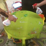 #liberidisporcarsi dovrebbe essere un appuntamento obbligatorio in ogni scuola e in ogni casa, perchè non avete idea della creatività che un bambino sprigiona quando si sente appunto libero da divieti e costrizioni (e dalle ansie di mamma). Bisogna pulire? Sì, ok, ma si può fare tutto nel giusto modo. Io e le mie amiche, ad esempio, abbiamo organizzato uno spazio con tavolo e tappeto a delimitare l’area di gioco, abbiamo vestito i nostri bimbi con abiti in cotone semplice e non con qualcosa che potesse rovinarsi e soprattutto ci siamo assicurati che tutti i giochi ed i colori usati fossero atossici, perchè c’erano anche bambini molto piccoli che non hanno mancato di “assaggiare” gessetti e tempere. Poi ci siamo godute la loro gioia, la loro creatività che esplodeva su un foglio bianco, il loro scambiarsi le cose con serenità visto il clima di allegria. E una volta messi ad asciugare i disegni, siamo passate alla fase di pulizia, semplice e perfetta con lo spray igienizzante per superfici dal profumo delizioso.