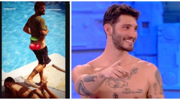 Gilda appare in topless e con il fondoschiena in bella vista nella villa di Ibiza dove Stefano De Martino sta trascorrendo le vacanza con gli amici, tra cui il fotografo Raffaele Marone, che immortala anche i boxer calati del ballerino.