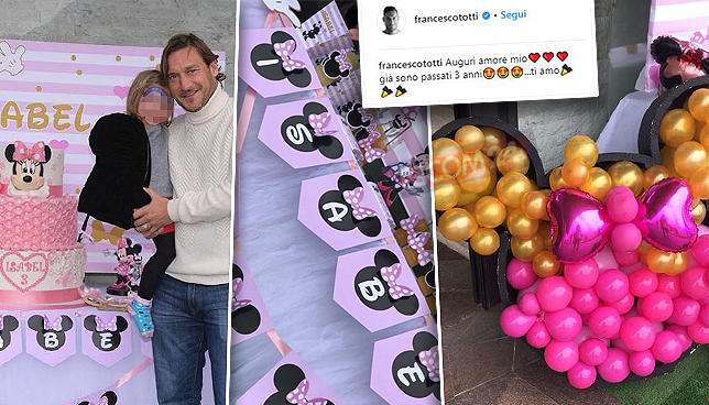 Francesco Totti e Ilary Blasi festeggiano i tre anni di Isabel con una dedica dolcissima e un party a tema Minnie: ecco le foto