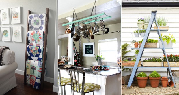 Ok, ormai se ne trovano di bellissime anche nuove (Ikea docet), ma vuoi metter il fascino delle vecchie scale a pioli? Basta carteggiarle un pò (specialmente se avete bambini o animali in casa, così da evitare il rischio schegge), magari dipingerla in un colore tutto nuovo e… Liberare la fantasia con il riciclo creativo!